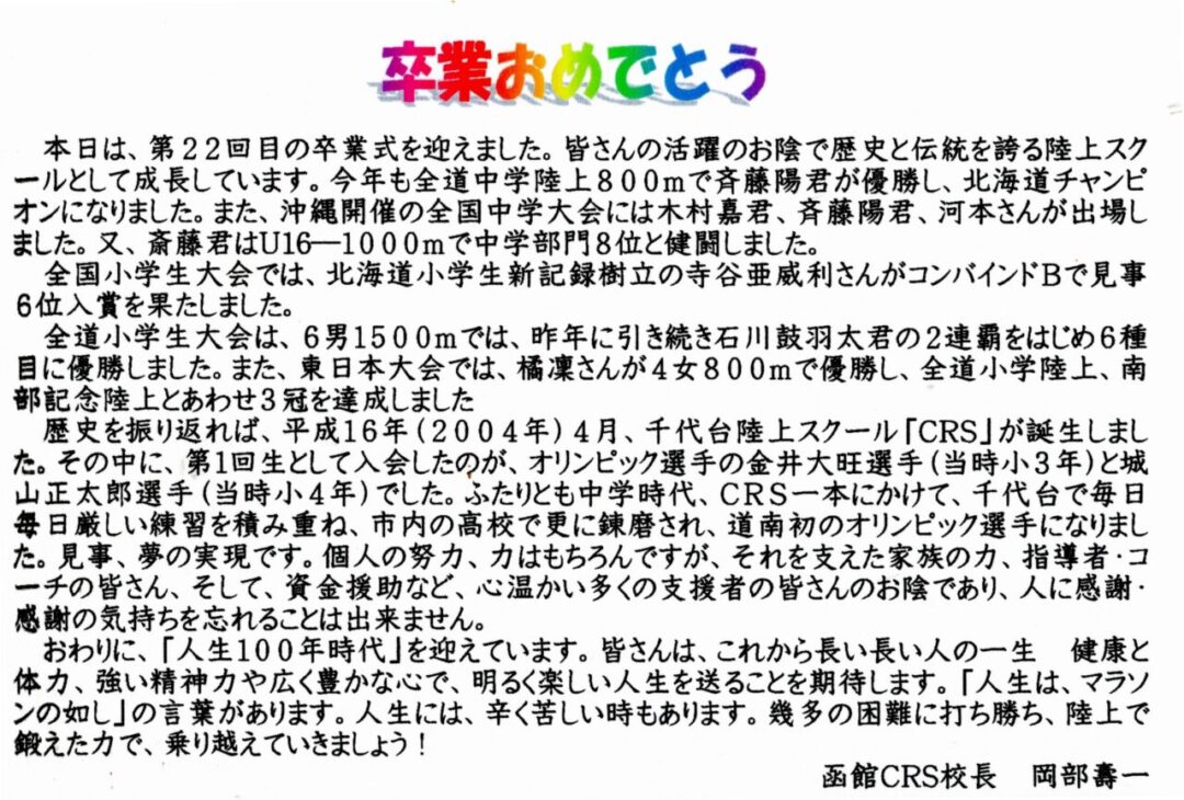 5年間よく頑張りましたね! 外国でも陸上続けてください。